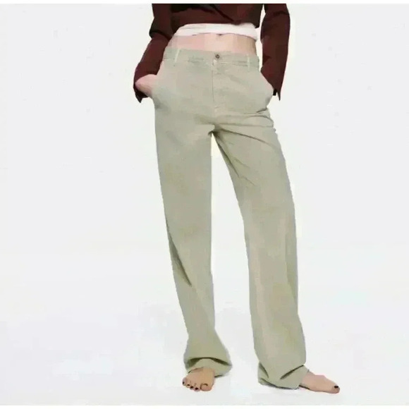 Zara Womens Khaki Green Wide Leg Piper Chino, XL