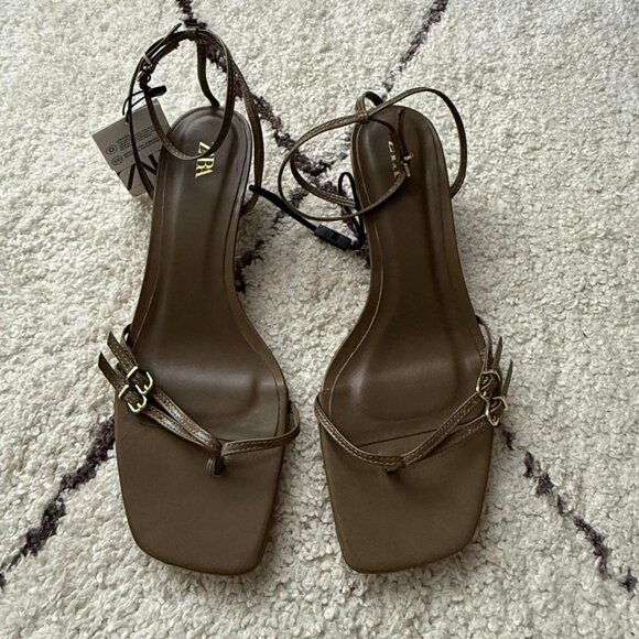 BNWT Zara Olive green strappy sandals kitten heel size 10/41 (fits a 9.5)