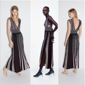 Zara Knit Dress Size Medium Multicolored Striped Midi Sleeveless 2142/109 NWT