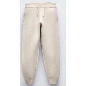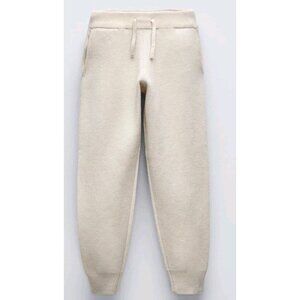 Zara Women‘s Knit Joggers Small Ivory Tapered
