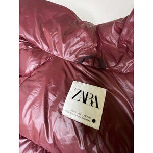 Zara Women’s LIMITED EDITION DOWN Jacket Hooded Puffer Coat Maroon L