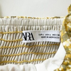 Zara Women’s Large Yellow Green Smocked Puff Sleeve Mini Dress