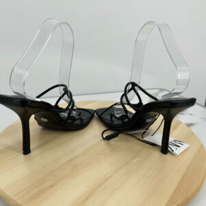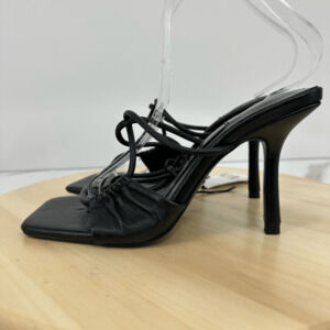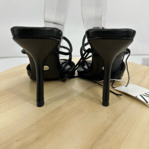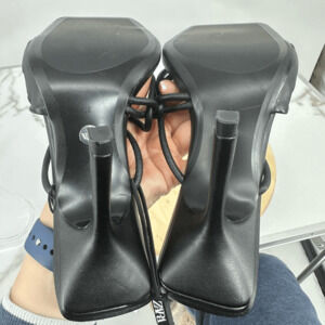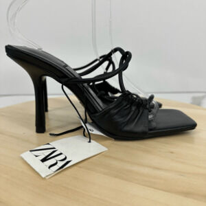 Elevate your shoe game with these gorgeous black leather strappy heels from Zara. Designed with a slip-on closure, these shoes are perfect for any formal or party occasion. The high stiletto heel style adds an extra touch of elegance to your outfit, while the leather upper material ensures durability and comfort.