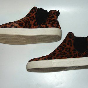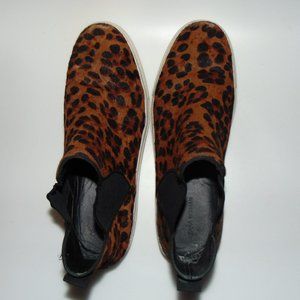 Zara women's high top slip on animal print sneaker boot. Pony hair upper, rubber sole and elastic insert on both side for easy slip on. Size: 41(EUR) (10 US) Women's. Condition is used with light wear.
