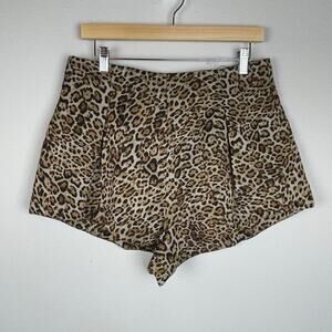 Zara Women's Leopard Print High-Rise Pleated Shorts L – Back Zip Closure