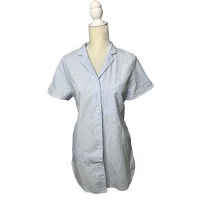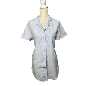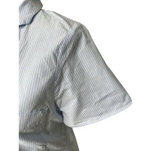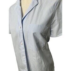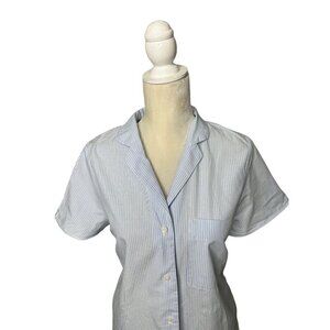 Zara Women's Light Blue & White Striped Button-Down Short Sleeve Shirt Tall M