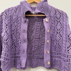 Chic lilac sweater by Zara. Features a cozy knit design. Ideal for layering.