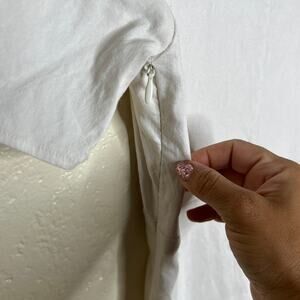 Zara women’s linen blend mini dress in crisp white, featuring a chic ring cutout detail at the waist for a modern, eye-catching touch. Designed with a collared neckline, button front, and short sleeves, this bodycon silhouette flatters the figure while offering breathable comfort from the lightweight fabric. Perfect for summer events, vacations, or a stylish night out. Size Small provides a fitted, sleek look. A versatile piece that combines sophistication with a hint of playfulness, making it a standout in any warm-weather wardrobe.