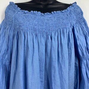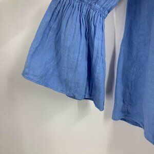 Zara Women's Linen Off The Shoulder Flared Sleeve Smocked Top Size S