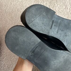 Good condition with minor wear. Some creasing on toe. Some residue/scuff marks on back heel. Insole on one shoe- showing signs of wear/ peeled. Size 37!
