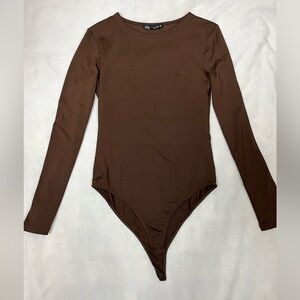 Zara Women’s Long Sleeve Round Neckline Pullover Bodysuit Brown Size Small