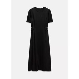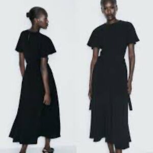 Zara Women's Lyocell Buttoned Midi Dress in Black Size XL 100% cotton NWT