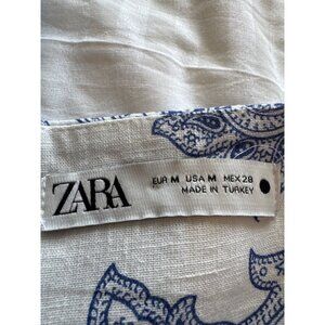 This Zara dress showcases a stunning blue and white paisley print, offering a chic and elegant look. Made of cotton & linen, it promises comfort and breathability. Ideal for various occasions, this dress provides a flattering fit with its medium size and structured bodice.