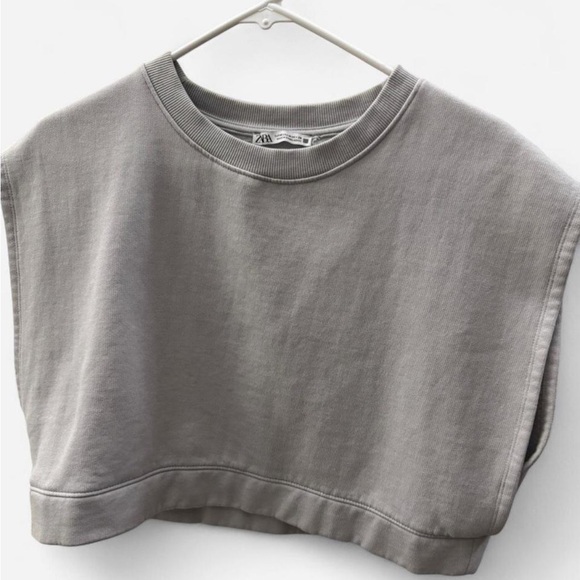Zara Womens M cropped grey sleeveless muscle sweatshirt#zara#80s#croppedsweatshirt#winterworkout#athletic#sporty#athleisure#gymclothes