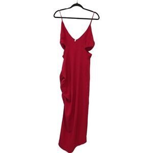 Zara Womens Dress XL Red Ruched Cocktail Party Maxi Cutout Stretch 2298/173 NWT