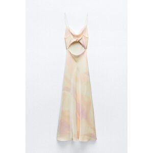 Zara Womens Maxi Dress M Cream Cut Out Twisted Knot Satin Effect 2180/217 NWT