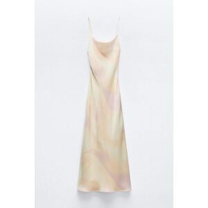 Zara Womens Maxi Slip Dress M Cream Pink Cut Out Satin Effect 2180/217 NWT