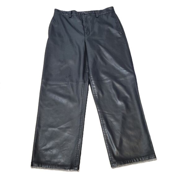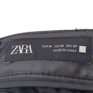 Zara Women's Medium Black Top-Stitched Faux Leather Pants Wide Leg