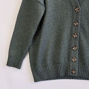 Zara Womens Medium Forest Green Metallic Cardigan Grandpa Core Cabin Sweater