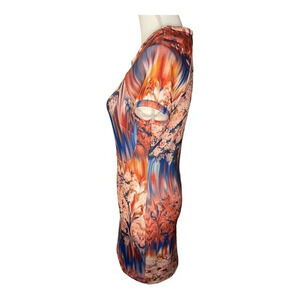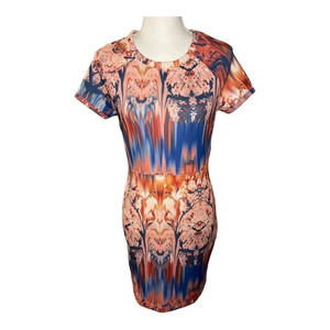 Zara Women’s Medium Scuba Neoprene Cherry Blossom Printed Short Sleeved Dress