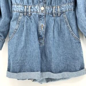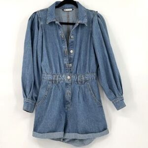 Zara Womens Medium Wash Blue Puff Sleeves Button Front Denim Romper XS