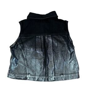 Zara Women’s Metallic Silver Foil Denim Black Button Front Vest Size S NWT