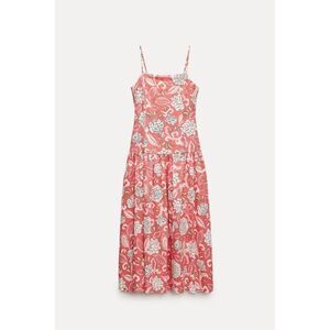 Zara Womens Midi Dress Strappy Size M Red Floral Sleeveless 2183/065 NWOT
