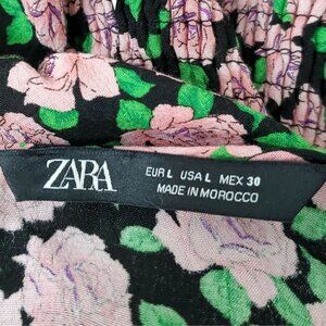 Zara Womens Mini Dress Large Floral Print Smocked Bottom Bloggers Favorite
