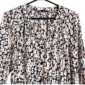 Zara Women's Multi Florals 3/4 Sleeve Long V-Neck Midi Dress