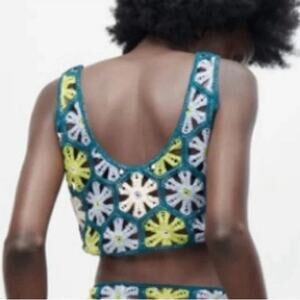 Zara Women's Multicolor Crochet Knit Flower Crop Tank Top Size Medium