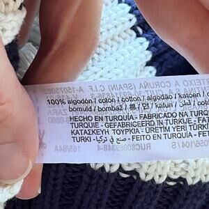 Zara Women's Navy And White Striped Cropped Distressed Sweater Size S
