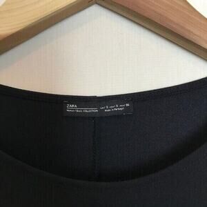 Zara Womens Navy Blue Long Sleeve Ruffle Hem Embroidered Flower Dress S Grandma