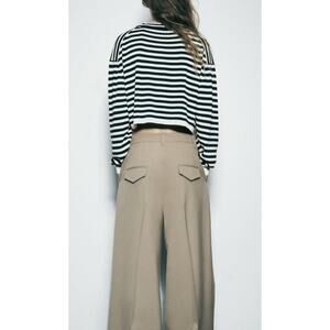 Zara Womens Navy Striped Nautical Long Sleeve Size Small Knit Crop Sweater EUC