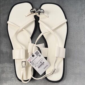 Zara Women's Off-White Cross Strap Sandals