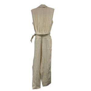 Zara Women's One Piece XS Jumpsuit Ivory Belted Collared Sleeveless 8741/227 NWT