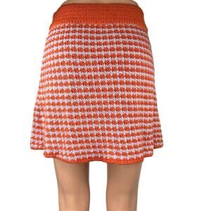Zara Women's Orange Crochet Knitted Pattern Mini Straight Pencil Skirt Size M