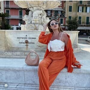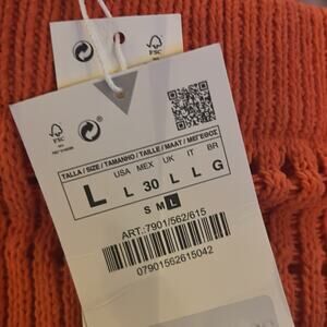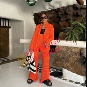 Step into style with this vibrant orange crochet pant Zara, featuring a textured knit design that adds a touch of sophistication. The tailored fit and modern silhouette make it a standout piece for any occasion. Embrace the bold color and chic design for a fashion-forward look.