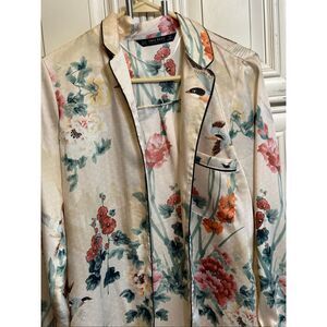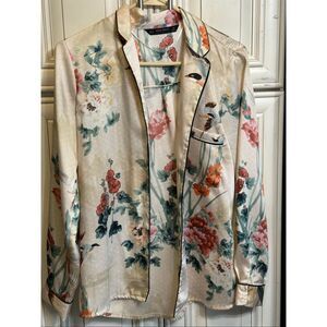 Zara Women's Oriental Japanese Garden Floral Print Satin Shirt Multicolor Small