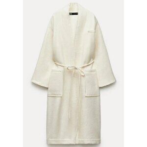 Zara Womens Overcoat XS off White Elegant Manteco Wool Tie Long Sleeve 8288/448 NWT