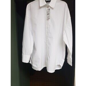Zara Women's Oversize White Button Down Long Sleeve Shirt S New With Tags