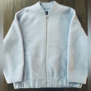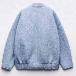 Zara Women’s Oversized Boucle Bomber Fleece Sky Blue Jacket. Full Zip. Size M-L