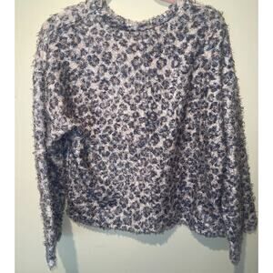 Zara Womens Oversized Fuzzy Knubby Cropped Sweater Animal Print Sz Medium