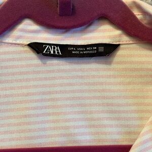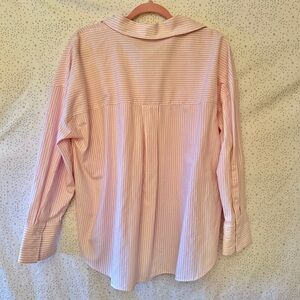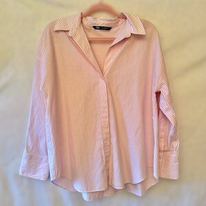Zara Women’s Oversized Pink/White Stripe Oxford Button Down Shirt L