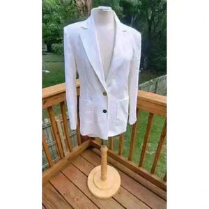 Zara Womens Oyster White Tailored Two Button Blazer Jacket XS Patch Pocket Gold Single breasted
