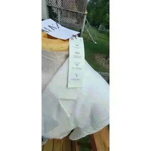 Zara Womens Oyster White Tailored Two Button Blazer Jacket XS Patch Pocket Gold