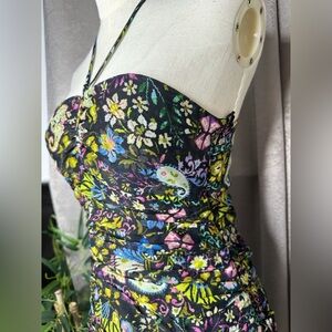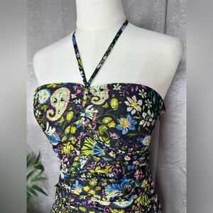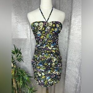 Zara Women’s Paisley Floral Print Ruched Halter Tie Mini Dress Sz M
