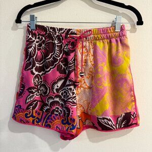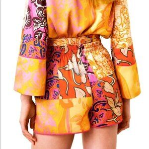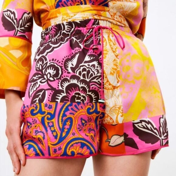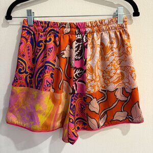 Zara Womens Paisley Floral Printed Elastic High Waisted Shorts Size S