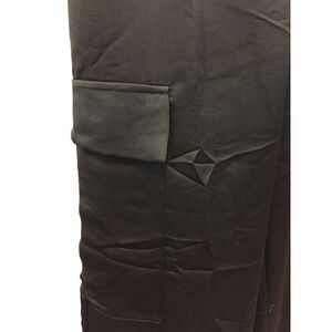 Zara Womens Pants S Black Satin Straight Leg Cargo Tactical Utility 8181/318 NWT