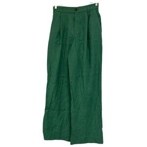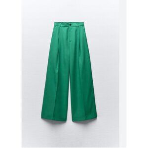Zara Womens Pants Size XL Trousers Green High-Waisted Pleated Wide Leg 5427/420