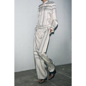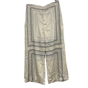 Zara Womens Pants Trouser XXL Ecru Geometric Printed Satin Effect 2761/027 NWT